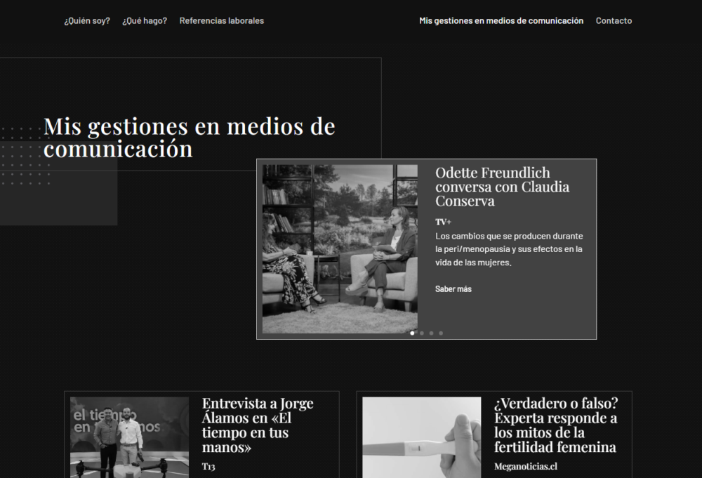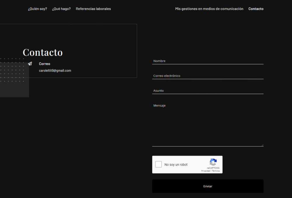 La clienta me contactó para desarrollar su página web de presentación profesional. Buscaba un diseño único y elegante que reflejara su estilo personal, y quedó completamente satisfecha con el resultado.
