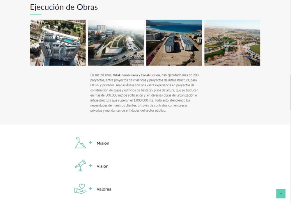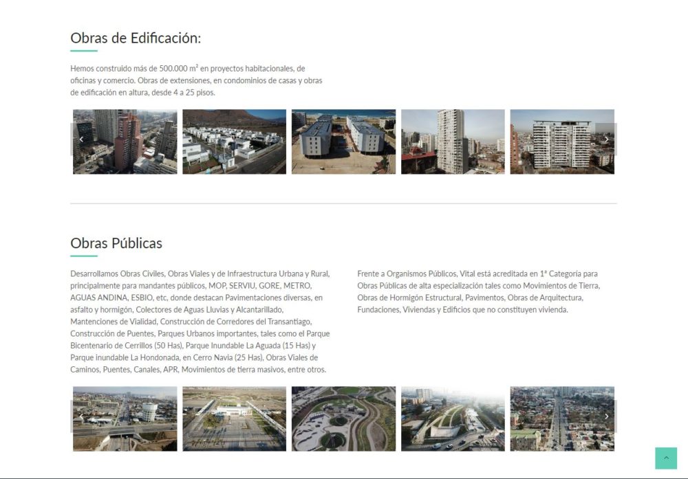 Con 20 años de existencia, el grupo de empresas Vital Inmobiliaria y Construcción, ha sabido consolidarse en el mercado Inmobiliario y Construcción a nivel nacional. En Edificación y en Infraestructura, gracias al desarrollo de cada una de sus obras con los más altos estándares de calidad y aplicación de procesos de vanguardia, con implementación permanente de las últimas tecnologías en construcción a nivel mundial.